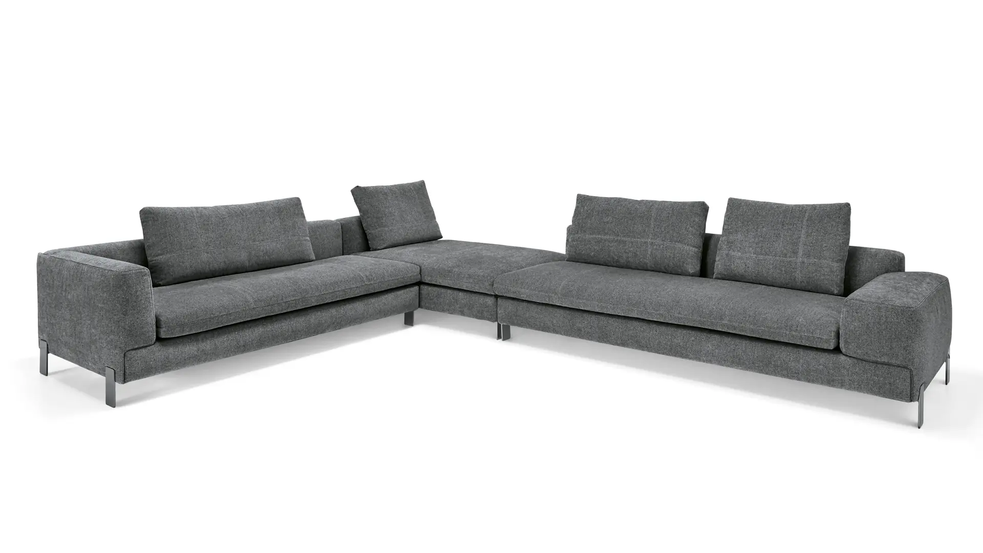 Die Armlehnen sind verschieden kombinierbar. In der Ausführung niedrig/breit/schmal ist die Rückenlehne in die Sitzfläche integriert.