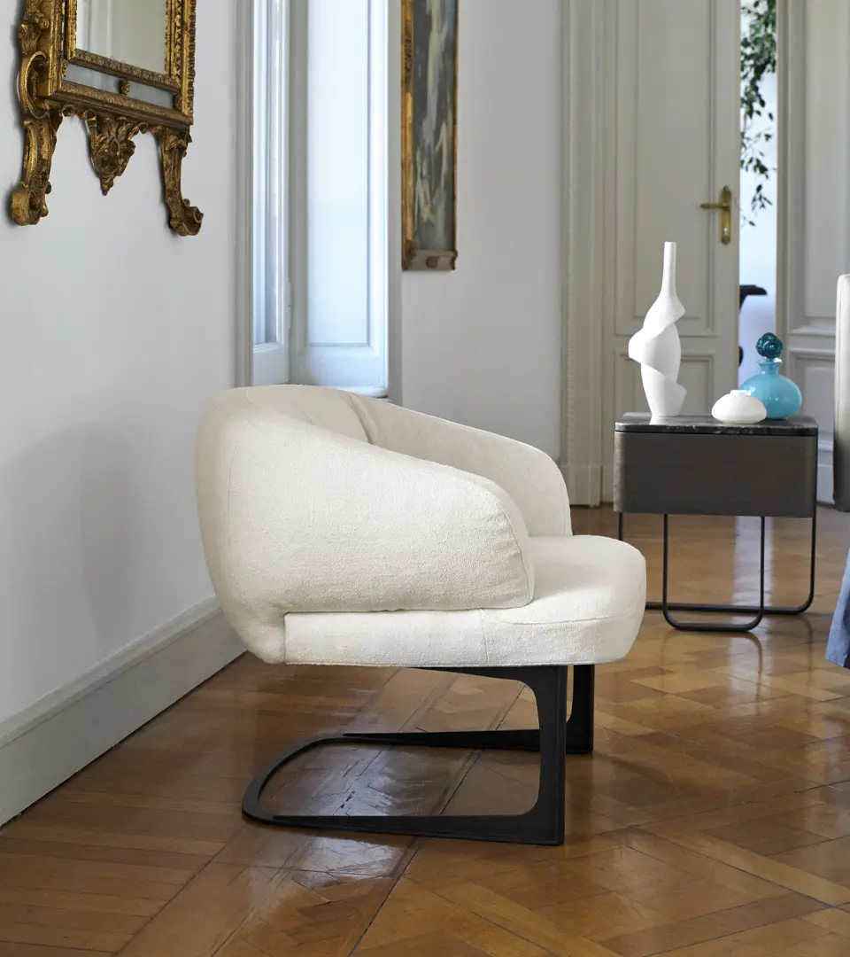 The bountiful leather or fabric capture and secure you, giving you maximum comfort and a sense of personalised security. Its design captures the minimal aesthetic whilst remaining welcoming and warm. This design floats, capturing its assertive nature and remaining firm in its own sense of self whilst matching harmoniously with the other furniture pieces of the living area.
