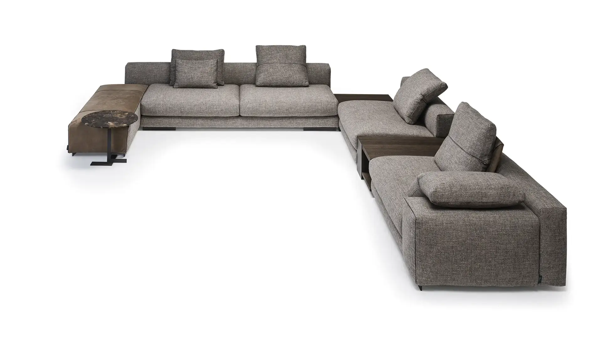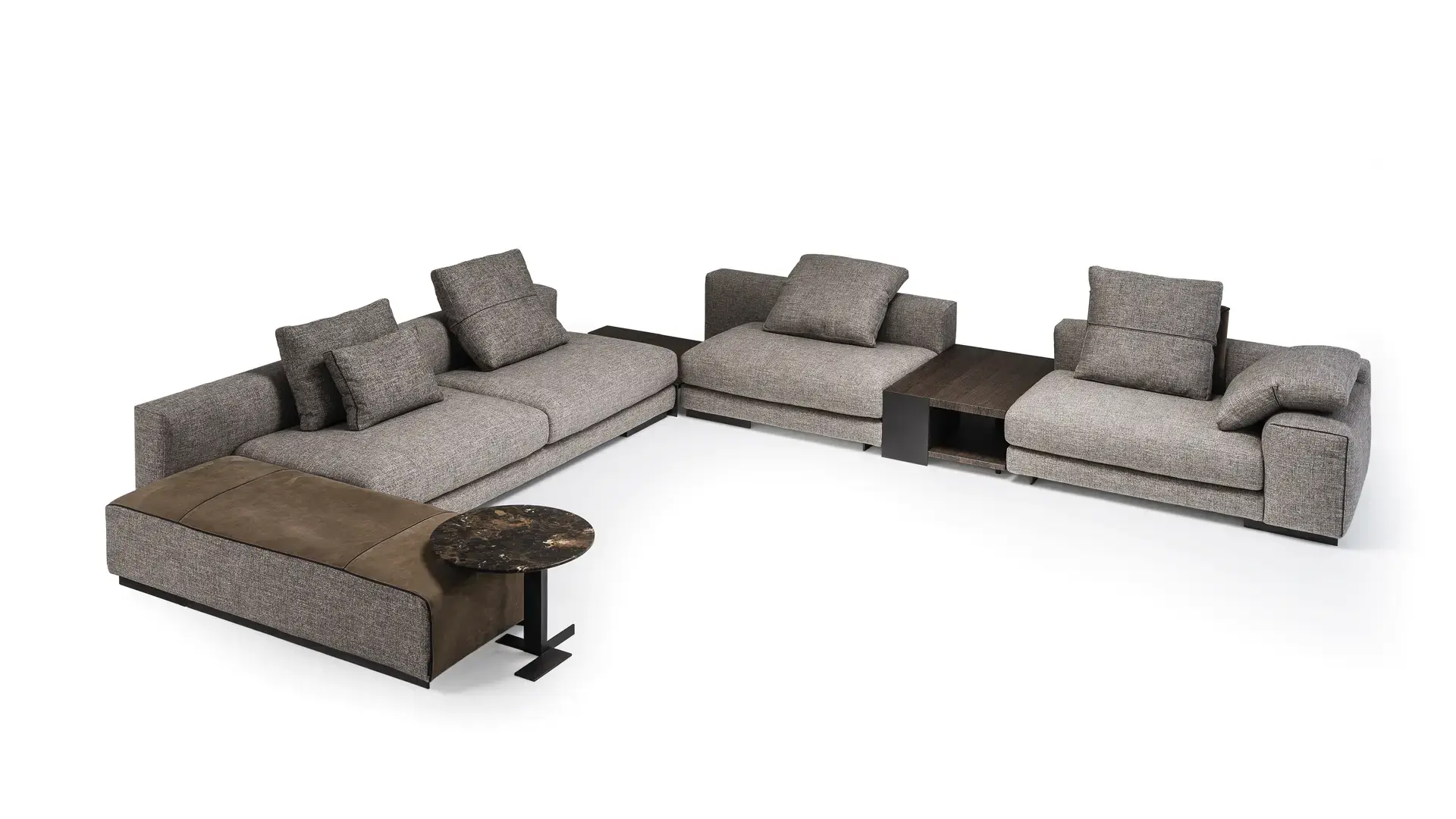Structure is a complex mix of thin, large, high and low arms, back cushions, corner units, chaise-lounges and accessories that blend together to create a cosmopolitan design structure, responding to an ever intricate design brief of modern living.