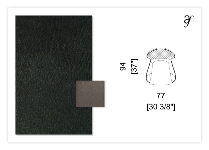 Swivel armchair in leather Pelle B/3152 , titanium base