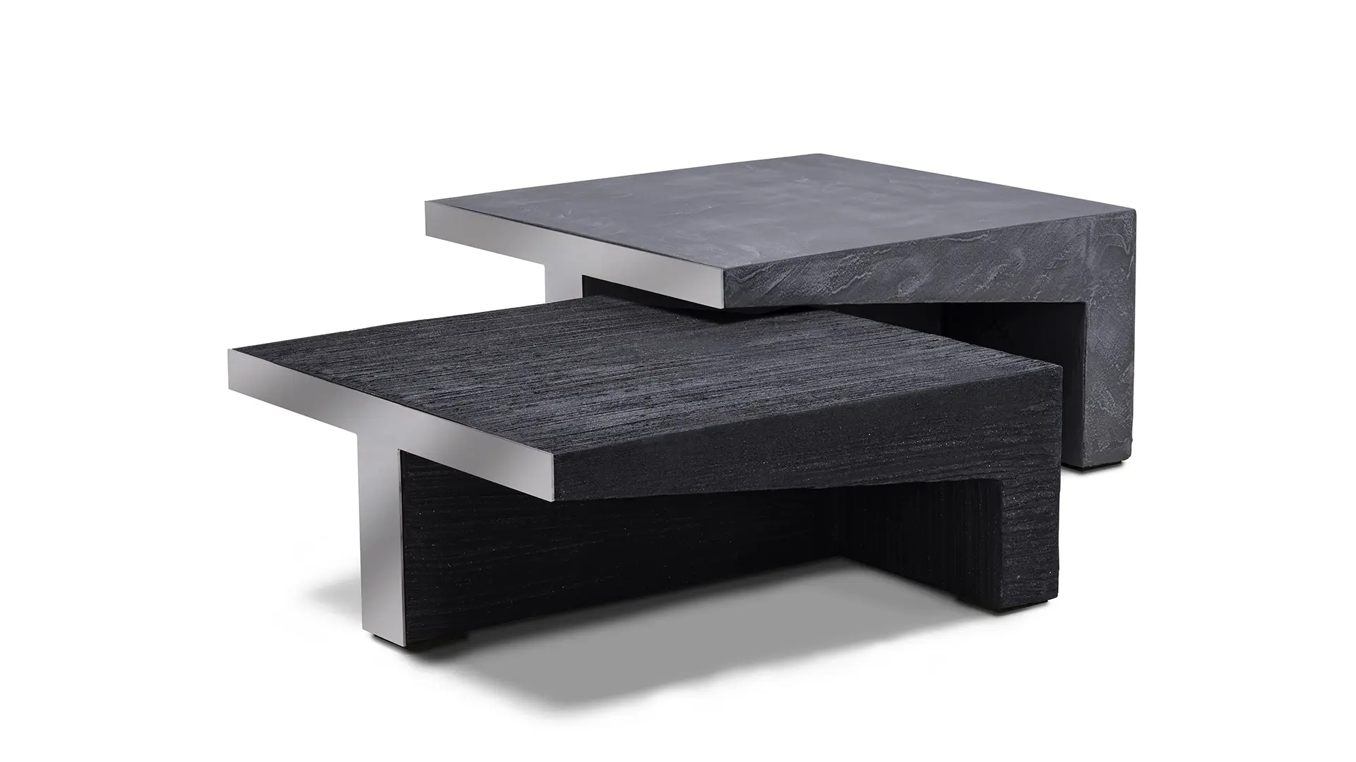 The tables are molded out of innovative, highly durable compounds: the high table in resin with powdered metal and the low table in resin with clay. The surface treatments of these cutting-edge, environmentally friendly materials are applied artisanally by hand, giving each table a one-of-a-kind texture. For your own vibrant dialogues and ground-breaking exchanges, Talking Heads offer exceptional support.