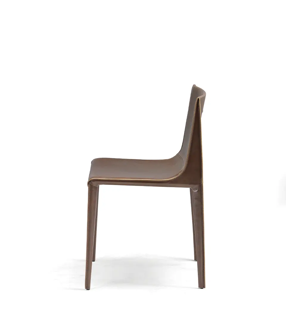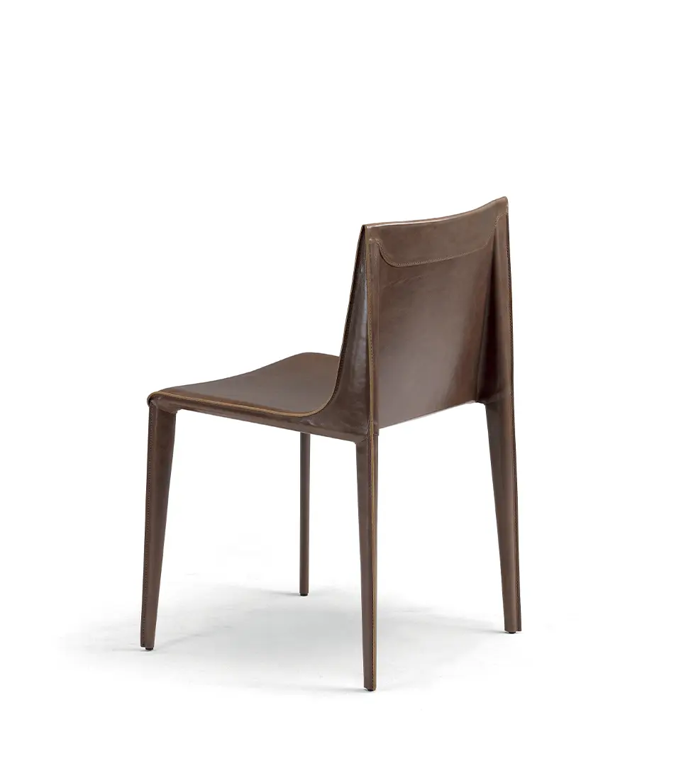 Una geometria rigurosa distingue la silla Emily de Manzoni & Tapinassi, con asiento amplio y respaldo bajo, que puede ser revestida en cuoietto o en cuero tratado con componentes vegetales, utilizados tambien en los accesorios de moda.