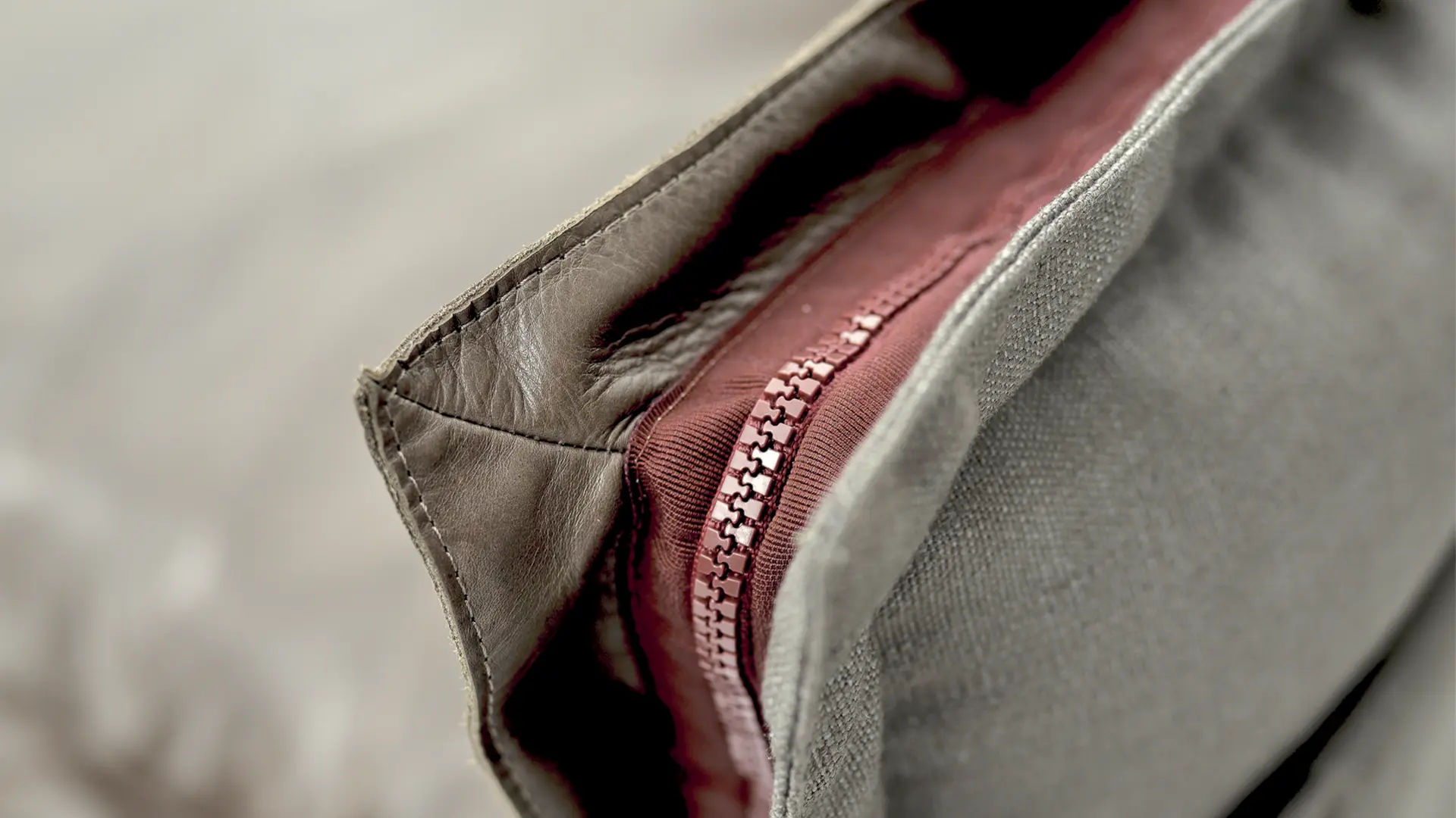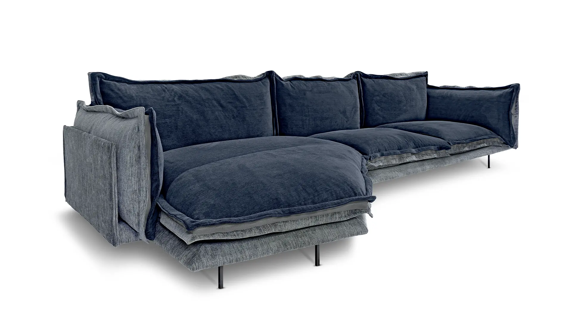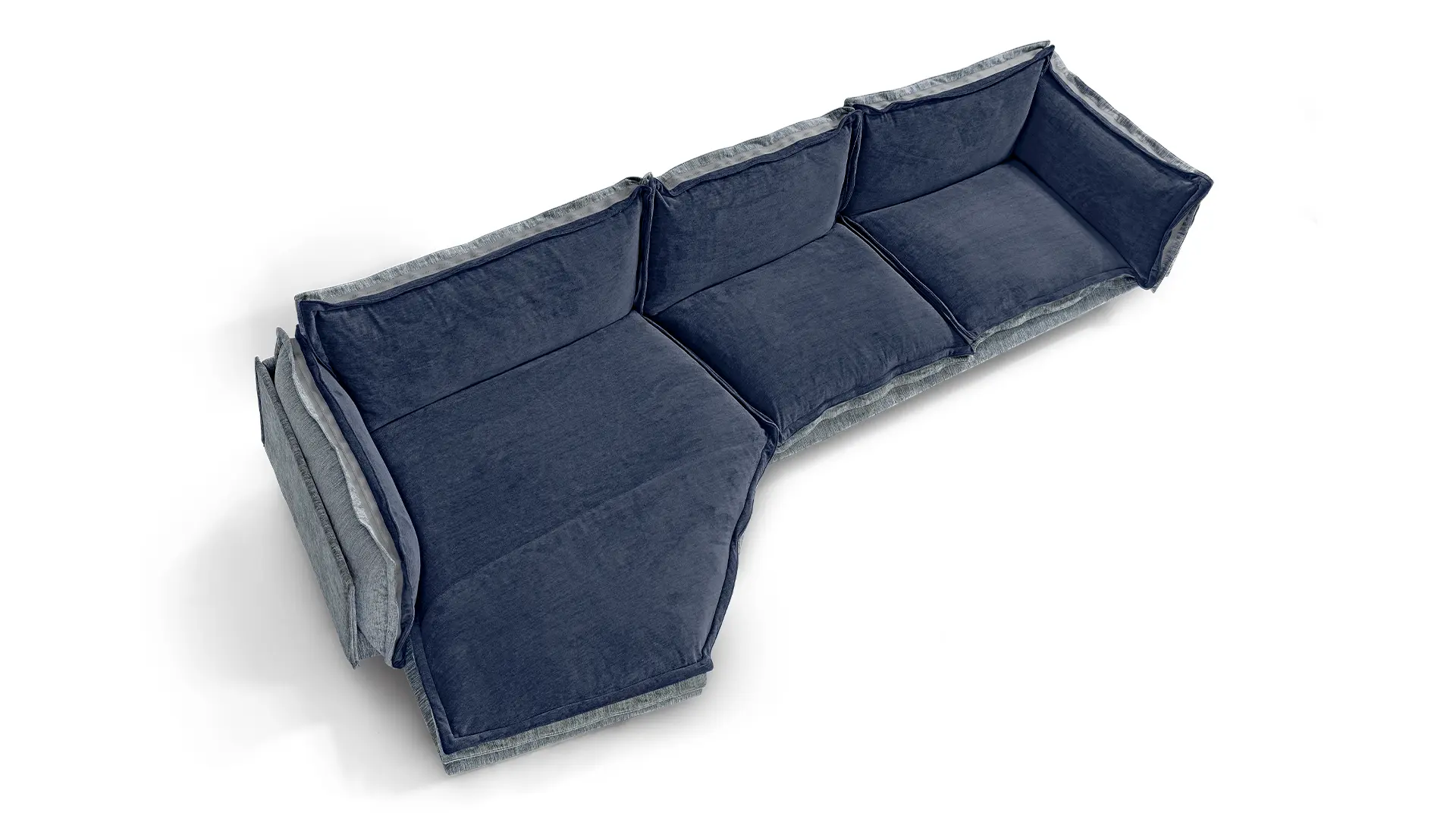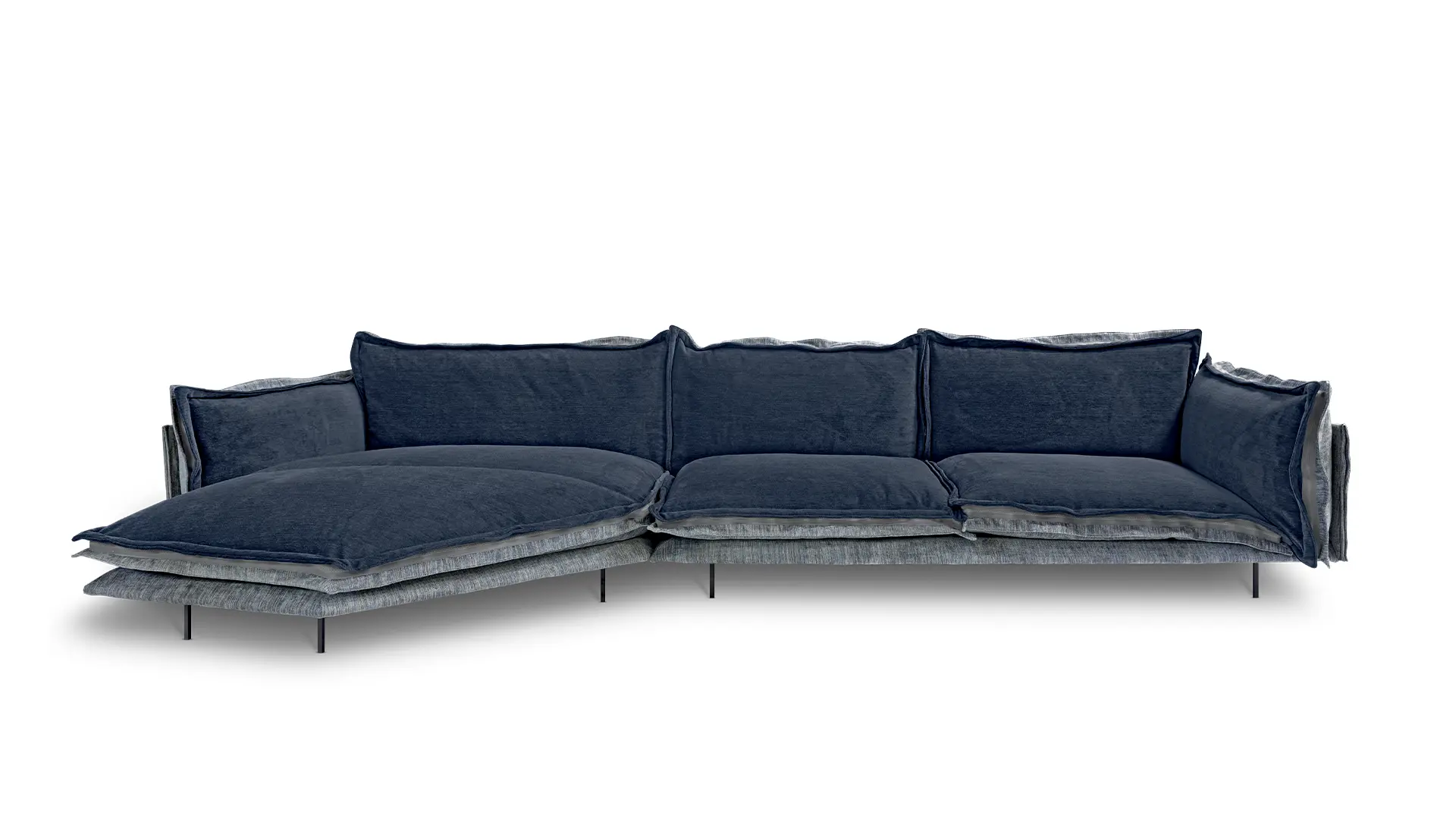 Son apparent désordre visuel s’oppose à l’ordre et au soin des détailles, pour obtenir an objet au style décidé, défini et haute de gamme. La structure subtile, élégante et discrète entoure et contient les coussins d’assise, de dossier et des accoudoirs, soulignés par des volants tout le long du périmètre qui donnent mouvement à là ligne du canapé et une extrême souplesse visuelle et tactile. La fermeture éclair importante, appliquée aux quatre cotés des coussins, unit les deux revêtements des coussins, donne rigueur et souligne le design particulier. Il est possible créer plus d’un million de combinaisons en mélangeant les couleurs des fermetures éclairs, des tissus et cuirs disponibles dans la riche collection Arketipo, pour obtenir des combinaisons chromatiques différentes et des assortiments sophistiqués. A l’intérieur du même produit et dans le même espace peuvent coexister la délicatesse, la chaleur du tissu et l’élégance du cuir. La structure se relève grâce aux jambes minimales réalisées en métal à section carrée.