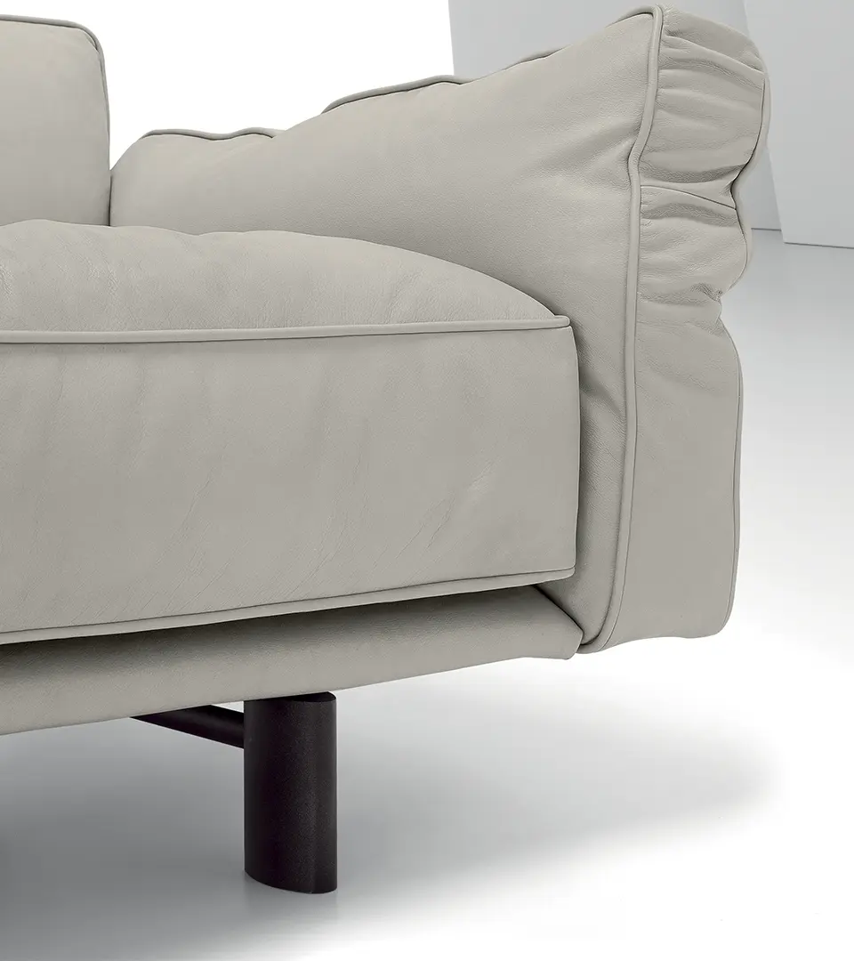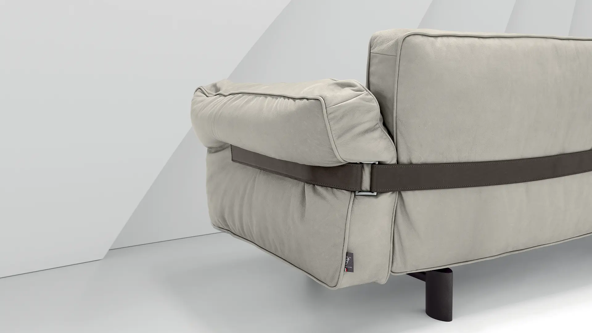 La découverte de soi-même est l’objectif. Qu’est-ce qui fait de nous ce que nous sommes ? Si la chanson nous demande de souffler quelques instants, notre canapé nous invite à le faire. Si la chanson nous demande d’avoir confiance, notre canapé nous invite à le faire. Les accoudoirs à format double, les deux hauteurs de dossier et le pied en forme de croissant sont magnétiques. Mais c’est la ceinture matelassée tout autour du canapé qui nous invite tous à serrer quelque chose entre les bras. Quoi qu’il en soit, c’est après tout une question d’individualité.