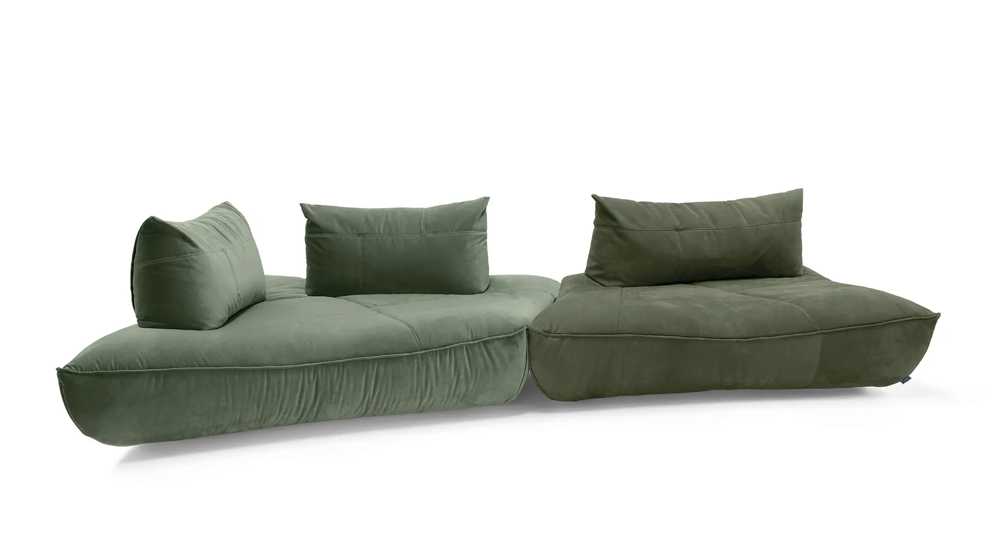 Placez les coussins selon vos envies, découvrez la forme irrégulière et ludique. Ici, vous décidez comment vous voulez vous asseoir, voyez comme les cousins peuvent être placés pour optimiser votre confort et votre position assise et admirez la couture, un autre exemple parfait de précision dans les détails.