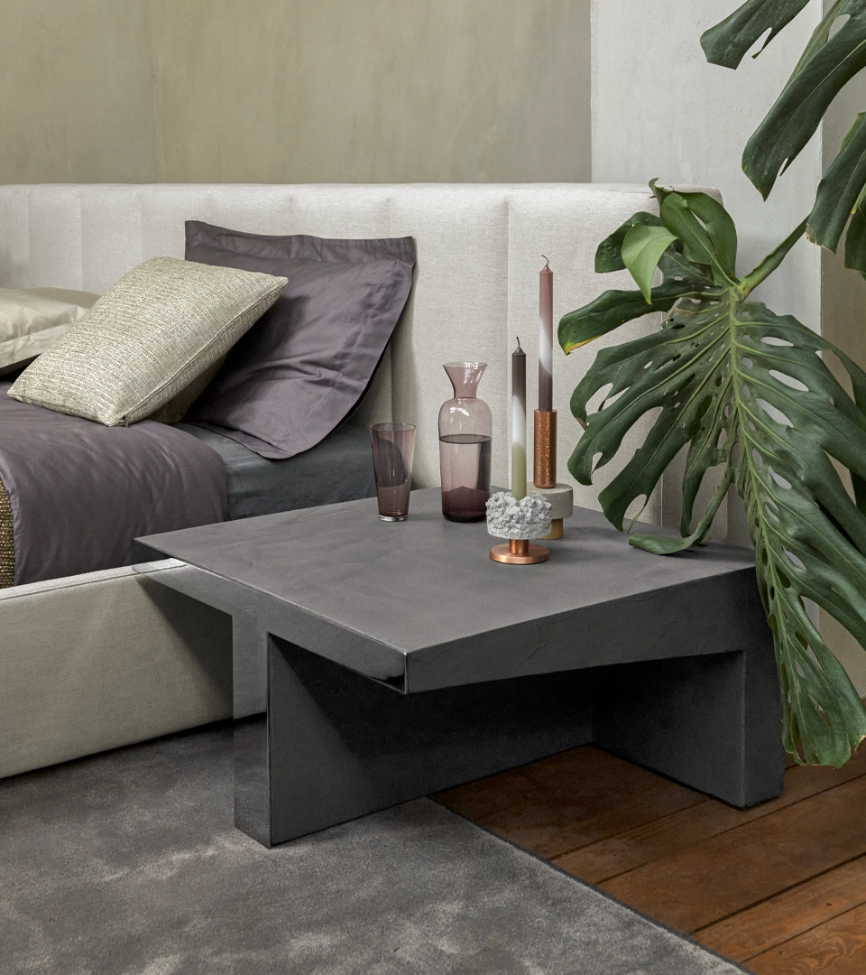 The tables are molded out of innovative, highly durable compounds: the high table in resin with powdered metal and the low table in resin with clay. The surface treatments of these cutting-edge, environmentally friendly materials are applied artisanally by hand, giving each table a one-of-a-kind texture. For your own vibrant dialogues and ground-breaking exchanges, Talking Heads offer exceptional support.