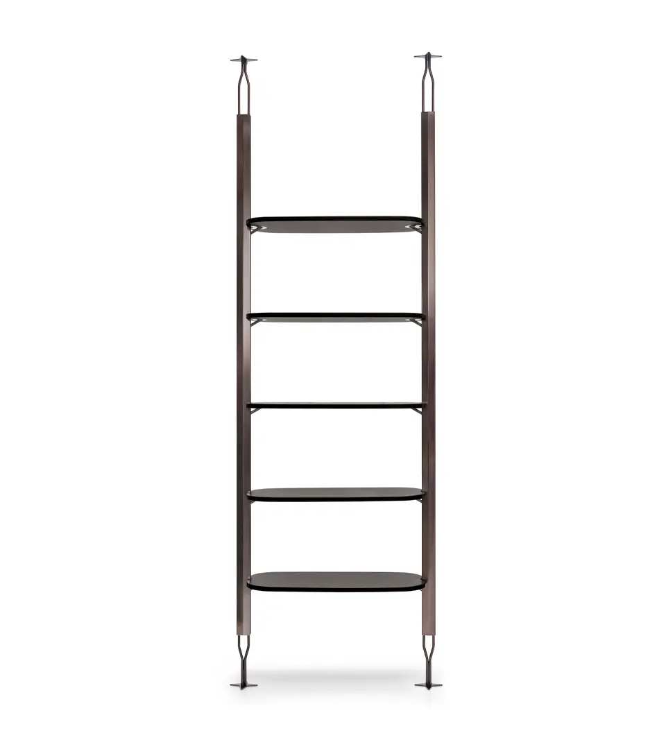 Un’architettura silenziosa che abita lo spazio con la grazia di un segno grafico: questa nuova libreria si svela attraverso un design filiforme e verticale, concepito per agire come un sofisticato diaframma visivo. Più che un semplice contenitore, l’elemento diventa una membrana leggera capace di definire gli ambienti senza mai chiuderli, lasciando fluire liberamente lo sguardo e la luce. La struttura trova la sua massima espressione nei dettagli materici, dove i ripiani in legno, finemente sagomati con un morbido profilo a saponetta, eliminano ogni spigolo per abbracciare un’estetica fluida e naturale.