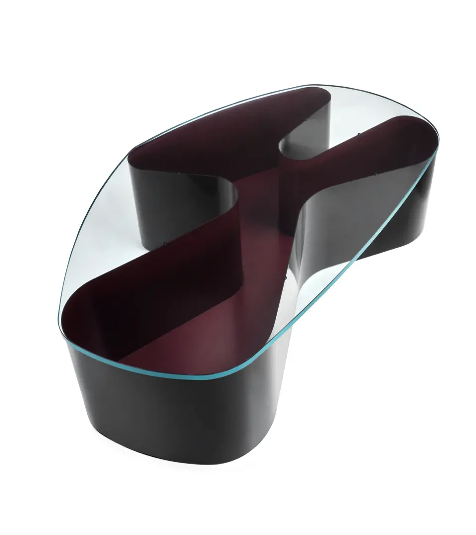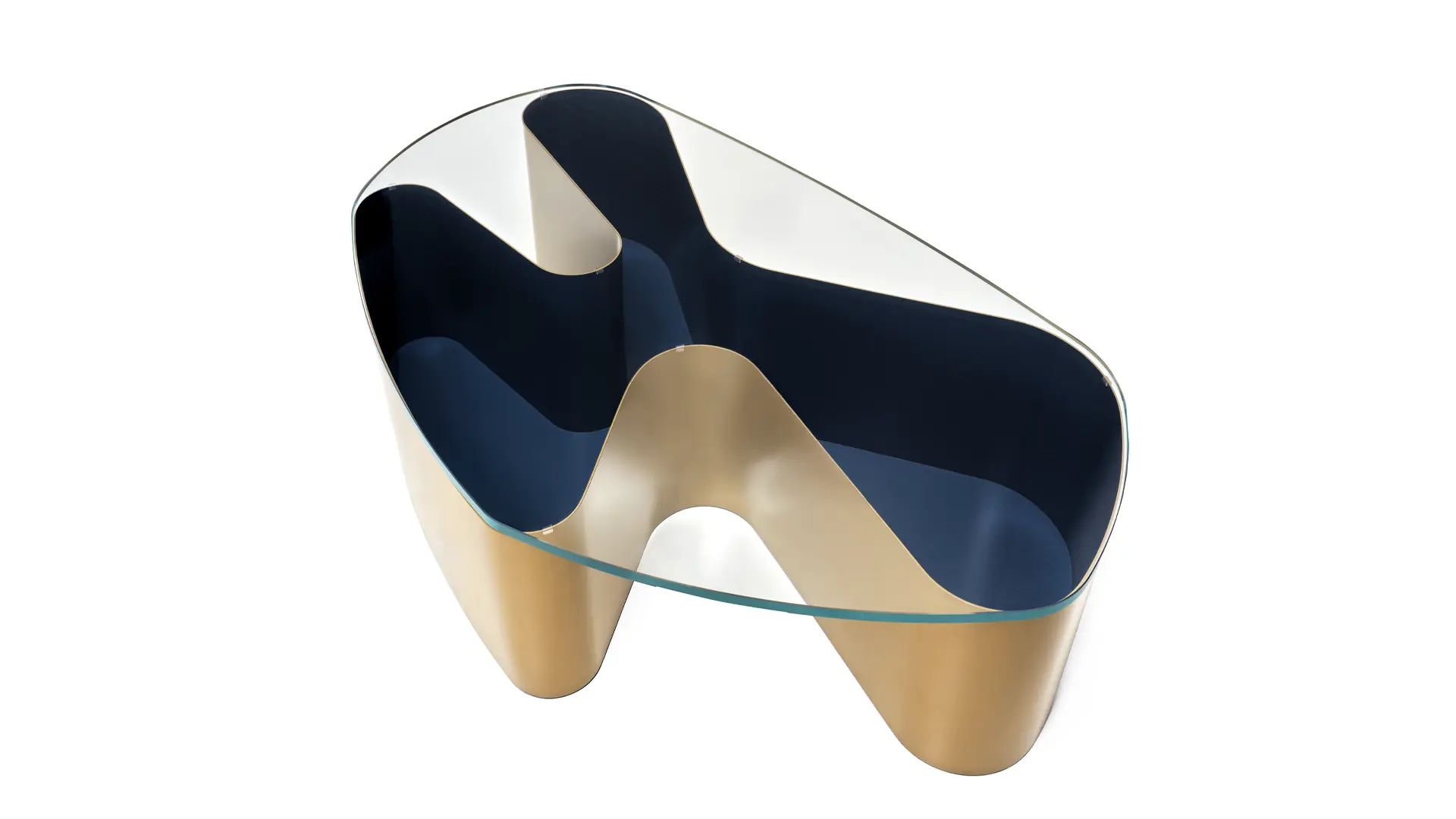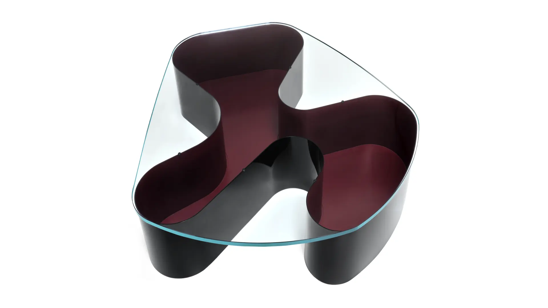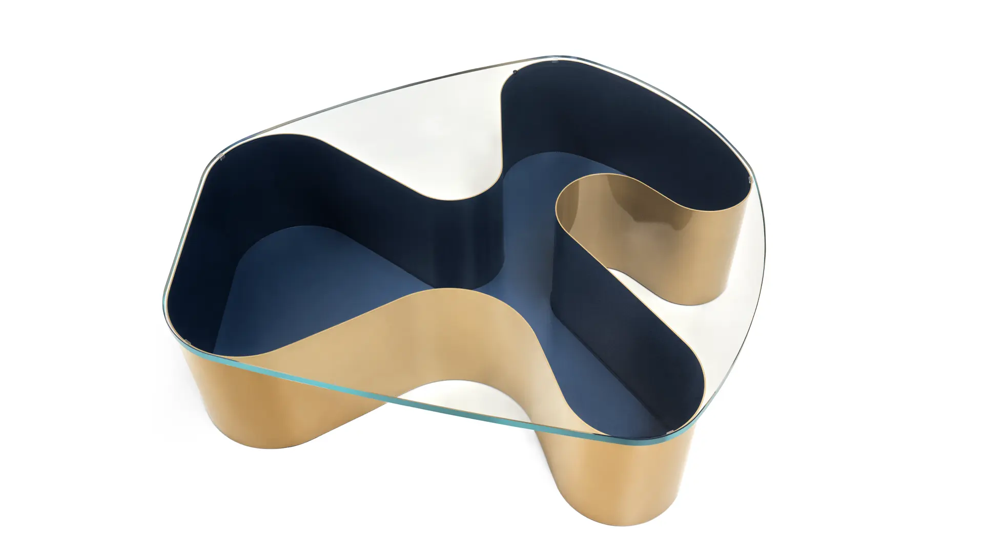 Tuttavia, il vero segreto di questa collezione risiede nel suo interno, accessibile solo attraverso il gioco di sguardi con la superficie. Qui, dove la struttura si piega e crea rientranze, si nasconde una laccatura interna a contrasto, vibrante e definita, proposta in rosso intenso o blu profondo. Questa scelta di colore non è una semplice finitura, ma un’anima nascosta che si lascia intravedere attraverso la trasparenza di un top in vetro temperato di alta qualità. Il vetro non solo protegge, ma rifinisce l’intero design, donando un’inaspettata leggerezza visiva e creando un’illusione di profondità che esalta l’imponente struttura sottostante.